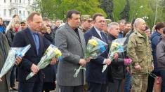 Они возложили цветы к мемориальной стелле военнослужащим Черниговщины, погибшим в зоне АТО, и отметили их память минутой молчания.