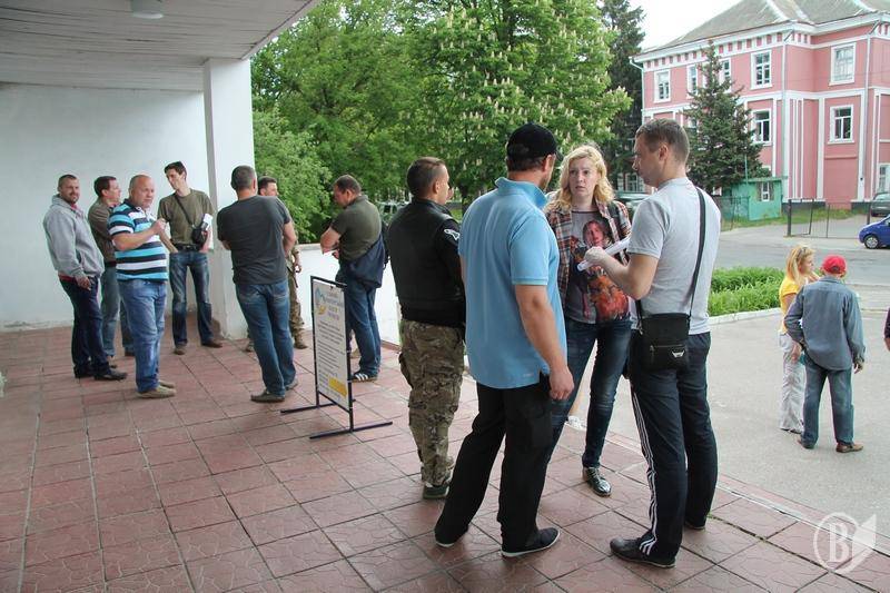 К черниговскому военкомату пришли представители общественных организаций, политических партий, участники АТО, журналисты.