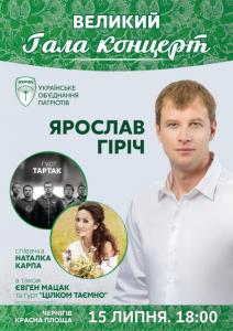 УКРАИНСКОЕ ОБЪЕДИНЕНИЕ ПАТРИОТОВ «УКРОП» и Фонд здорового общества Ярослава Гирича приглашает всех желающих на большой гала концерт при участии звезд украинской эстрады Натальи Карпы и известной группы «Тартак».