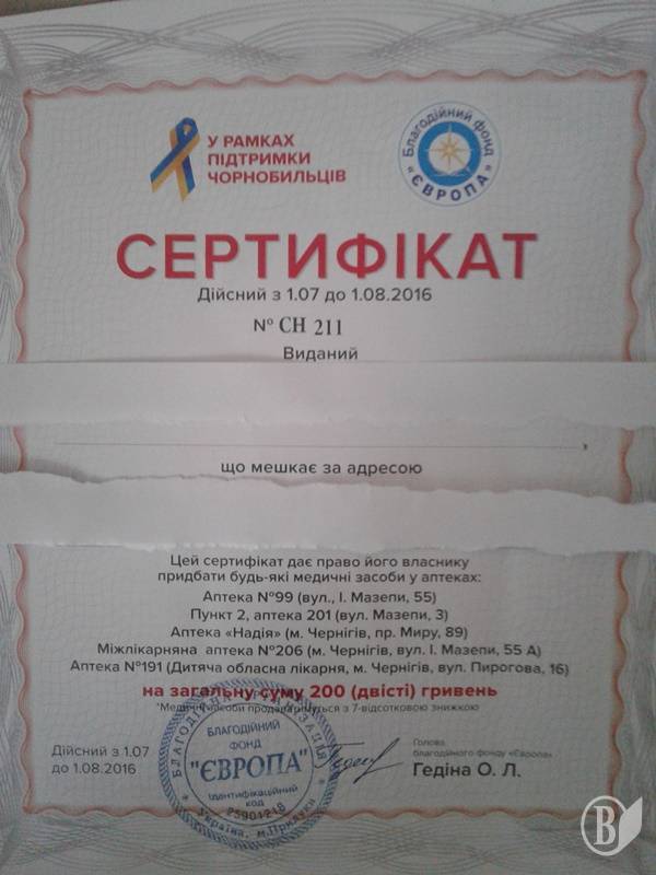 Сьогодні, 16 липня, спостерігачі ОПОРИ отримали повідомлення про те, що в окремих аптеках комунального підприємства Чернігівської обласної ради “Ліки України” виборці отримують лікарські засоби безкоштовно на підставі сертифікатів, виданих Благодійним фондом “Європа”.