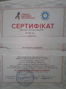 Як пояснила завідувач аптеки № 99 Олена Заяц, працівники аптеки обмінюють сертифікати на ліки, при цьому реєструють номер сертифіката та прізвище особи, що отримала безкоштовно товар. “Депутат раздает сертификаты малоимущим людям для того, чтобы они получили препаратов на 200 гривен”. На запитання спостерігача, який саме депутат їх роздає, завідувач відповіла: “На сколько я знаю, Власенко, ну кандидат в депутаты. Договор был подписан генеральным директором. Сертефикаты выпускают с 1 июля до 1 августа”.