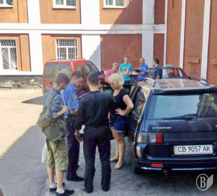 Отметим, что в машине закрылось трое людей. В то же время, женщина, которая была четвертой в этой группе, дает объяснения представителям полиции.