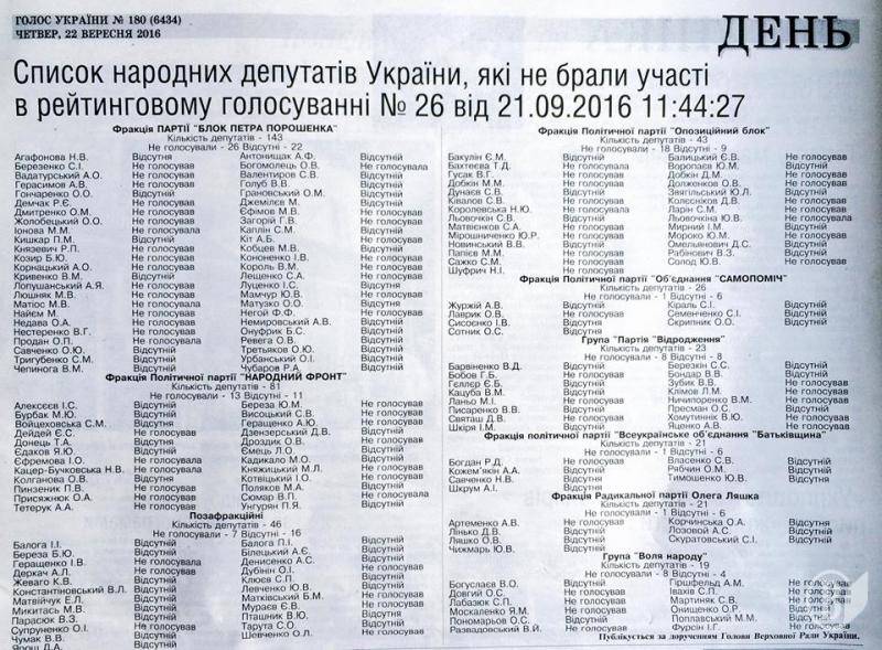 Максим Микитась и Сергей Березенко попали на"страницу позора"в парламентской газете"Голос Украины"как нардепы-прогульщики.