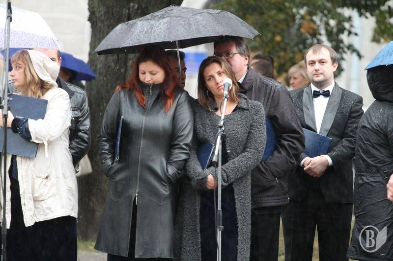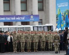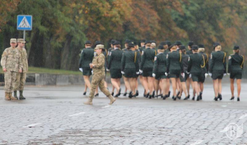 Це міському голові Владиславу Атрошенку можна було довго розказувати про чернігівську історію і найбільш зруйноване місто України. Що він і зробив. Але коли почався дощ, треба було бачити, як дрижала крайня коробка дівчат Академії пенітенціарної служби України!