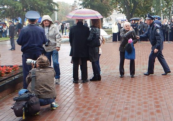 Автора этих строк сразу остановили вблизи фонтана в парке напротив горсовета! Потом около перехода с центральной площади к облгосадминистрации, а в третий раз около перехода из площади в парк напротив кинотеатра.