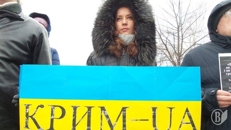Присутні згадали історію окупації Криму, імена полонених заручників Кремля, а історик Сергій Лепявко провів історичні паралелі.