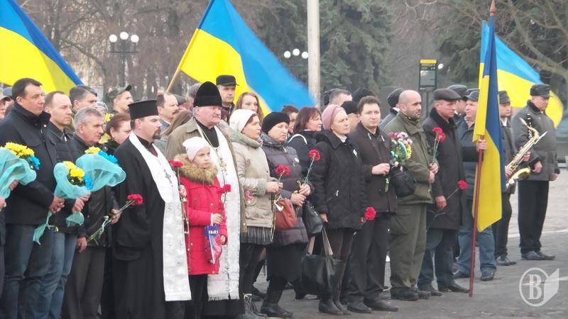 У покладанні квітів Небесній сотні та бійцям АТО взяли участь бійці добровольчих батальйонів з Чернігівщини і Волині, міський голова Чернігова Владислав Атрошенко, голова Чернігівської ОДА Валерій Куліч, духовенство, громадські активісти і волонтери.