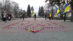 На Красній площі відбувся молебень, присутні вшанували полеглих Героїв і виклали свічками малий герб України.