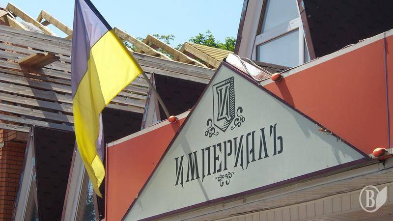 Далі у пошуках обіду натрапляємо на цікавий заклад під назвою "ИмпериалЪ" з українським прапором (на фото нижче) зі смішними цінами у дуже смачною їжею.