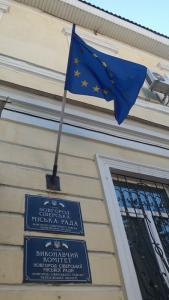 Отже, не все так погано в місті, яке зустріло нас зірками на воротах місцевого Товариства сприяння обороні України (на фото нижче).