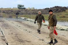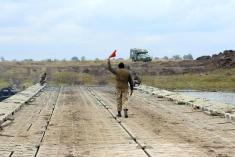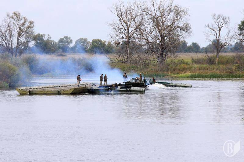 Зазначимо, що практичні дії понтонерів, з розгортання мосту, були успішно проведені з використанням засобів аерозольного маскування.