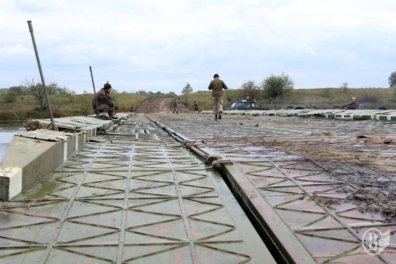 Міст, довжиною майже 80 метрів, для проходу колісної та гусеничної техніки навели в рамках відпрацювання одного з етапів бригадних тактичних навчань з бойовою стрільбою 11 окремої механізованої бригади оперативного командування "Північ", які відбудуться незабаром на одному з полігонів.