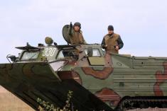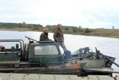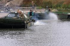 Підрозділи 12 окремого полку оперативного забезпечення оперативного командування "Північ" практично відпрацювали наведення понтонної переправи на одному з притоків річки Десна на Чернігівщині.