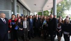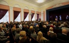 О 14:10 він зайшов до заповненої актової зали, а о 14:50 він сів у свій Мерседес на перекритому відрізку вулиці і на прощання крикнув студентам та викладачам, які залишилися біля входу.