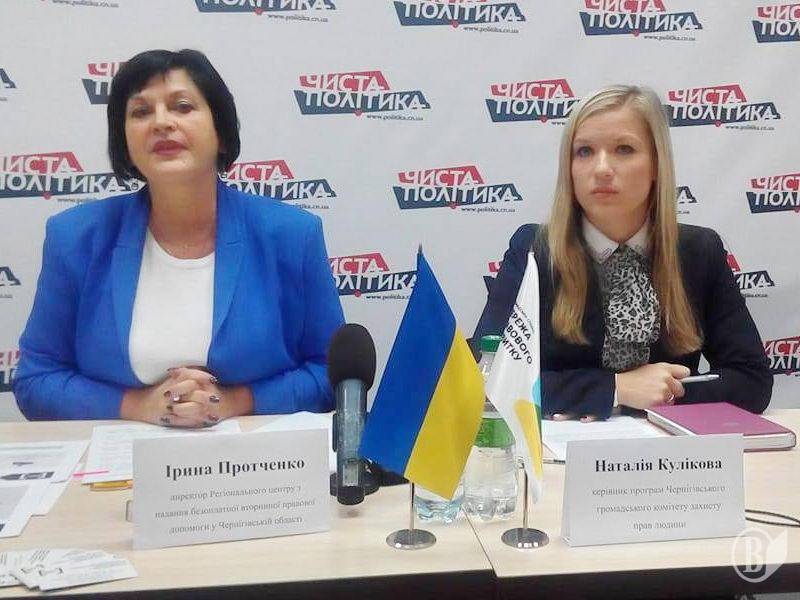 Учасники – директор Регіонального центру з надання безоплатної вторинної правової допомоги у Чернігівській області Ірина Протченко та керівник програм Чернігівського громадського комітету захисту прав людини Наталія Кулікова.