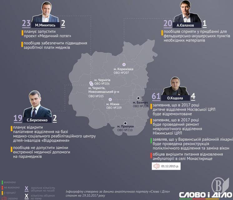 В контексті ухваленої минулого тижня медичної реформи видання «Слово і Діло» наводить інфографіку про те, як народні депутати України, обрані на Чернігівщині, виконували свої обіцянки.