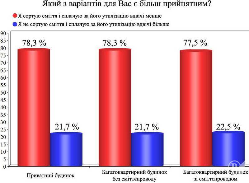Переважна частина опитаних респондентів (78%) готові сортувати сміття. І сплачувати за його утилізацію вдвічі менше.