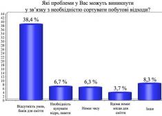 Для близько 7% проблемним є начебто придбання необхідних відер та пакетів. Понад 6% не вистачає на це часу. Ще 6% не мають вдома місця для сміття. Більше 8% опитаних осіб вказали інші причини.