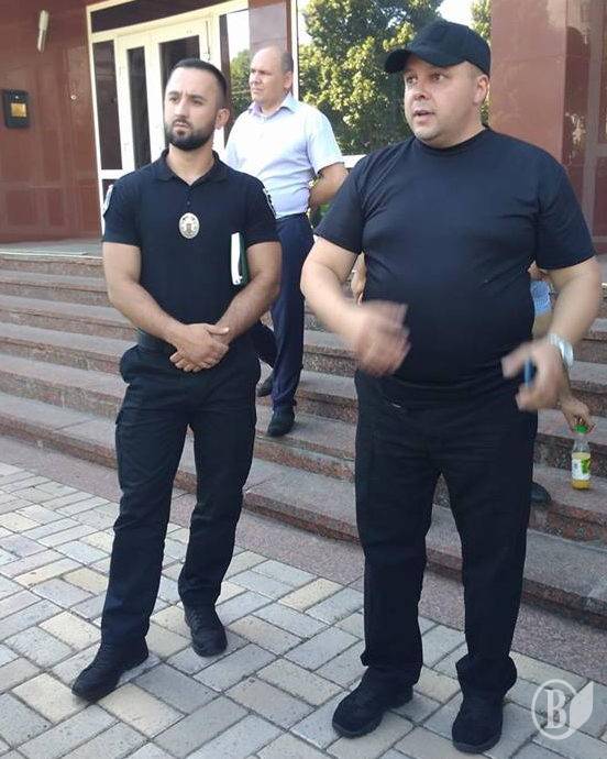 До активістів одразу вийшли заступник начальника ГУНП та новий начальник патрульної поліції.
