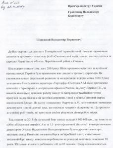 Прем’єра просять почути думку громади та трудового колективу «Смолинського торфозаводу» філії ДП «Чернігівторф» і покласти край свавіллю керівника «Укрторфу» Андрія Озерчука, з подачі якого відбувається рейдерське захоплення торфовидобувної галузі Чернігівщини.