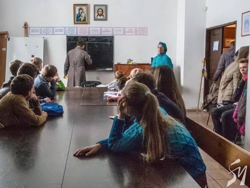 Кроме разбора полетов, то бишь итогов ночной игры, дети слушают Закон Божий – его преподает монотонно бубнящий батюшка, который не поднимает глаз на детей. Его не перебивают и не задают вопросов. Елена Леонидовна объясняет сказанное, добавляя к традиционному православию ведические нотки. На официальном сайте храма можно найти расписание церковно-приходской школы.