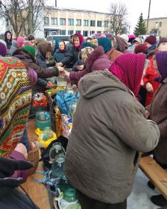 В селі Ковпита Чернігівського району, поруч з військовим смт Гончарівське, українська громада освячує Стрітенську воду та свічки.
