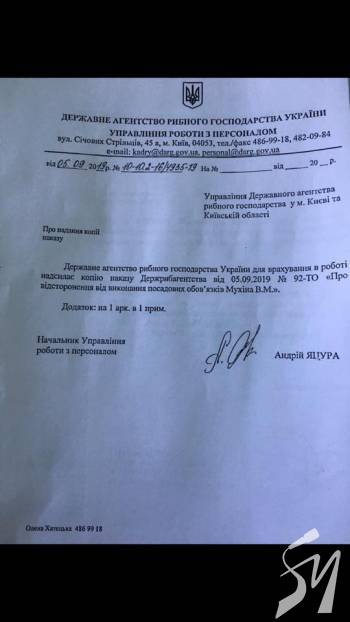 Державне Агентство рибного господарства України відсторонило від виконання своїх обов'язків начальника Київського рибоохоронного патруля. Це сталося на підставі численних звернень громадськості, а так само в зв'язку з відкриттям кримінальних справ на керівництво рибоохоронного патруля.