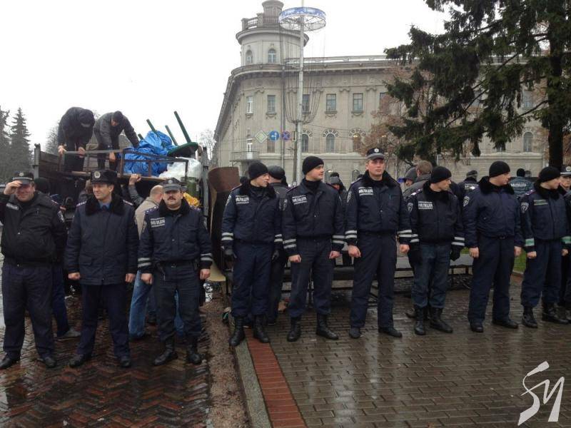 24 листопада відбулося пікетування Чернігівської облдержадміністрації громадськими активістами та представниками опозиційних політичних партій. А вже наступного дня судовими виконавцями та працівниками комунальних служб за допомогою міліції було знесено і вивезено намет та технічне обладнання чернігівського Євромайдану. Ця репресивна акція влади викликала суспільне засудження та обурення. Громадського активіста Станіслава Тавлуя, який на знак протесту намагався здійснити самоспалення, було затримано та складено акт про здійснення ним адміністративного правопорушення.