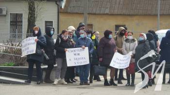 Перед початком сесії облради біля будівлі мітингували працівники гімназії.