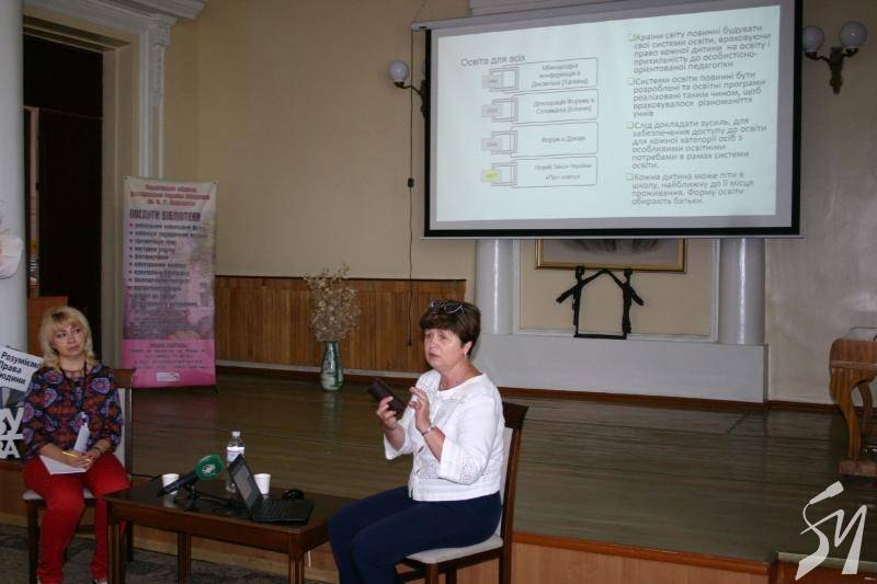 Пані Лариса ознайомила учасників із складовими інклюзивної освіти, Законом України «Про освіту» також розповіла про інклюзивно-ресурсний центр. Це нові установи, які покликані визначати особливі освітні потреби дітей. Чим відрізняється асистент вчителя від асистента дитини, які їхні функції та ін. Захід супроводжувався переглядом презентації.