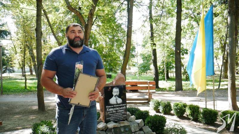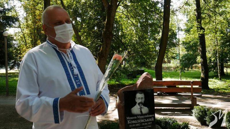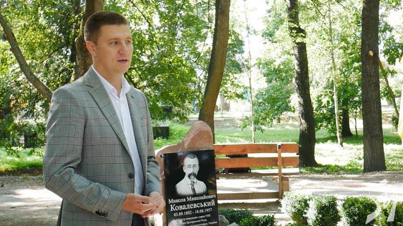 «За кілька днів до гетьманського перевороту 29 квітня 1918 року він отримав понад 2 млн. карбованців службових коштів. Отже, у хаосі зміни влади у тих умовах слабка людина могла б спокуситися їх привласнити. Проте, Ваш земляк і відданий український патріот доклав чимало зусиль, щоб зберегти ці кошти й потім спрямувати на державні справи. Микола Ковалевський — яскравий приклад чесної людини на державній службі. Тому пропоную започаткувати традицію, щоб новопризначені державні службовці та посадові особи місцевого самоврядування Ваших місцевих органів влади публічно біля цього пам’ятного знаку приймали присягу замість простого формального підписування папірця. Сучасна війна наочно нам показала актуальність цього питання», — так, розповідаючи про одного з творців Української державності початку XX століття, послідовного та незламного борця за волю нашого народу, він привернув увагу до виключної чесності Миколи Ковалевського.
