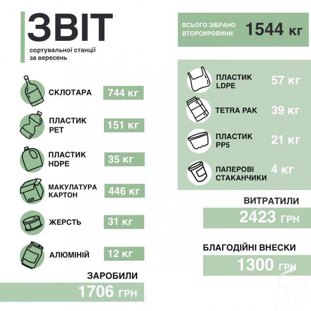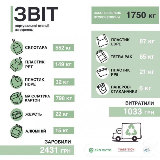 «Наша мрія – нуль відходів на полігоні. Вже 4 місяці на території Молодіжного центру діє освітня станція сортування. Кожну суботу та неділю ми вчимо містян правилам сортування і приймаємо на переробку всі види вторинної сировини. У нас є чудова і дуже наочна статистика. З моменту відкриття і до сьогодні ми вже відправили на переробку більше 5000 кг пластику, скла і макулатури. З реалізації ресурсоцінної сировини отримали 5643 грн, 4318 грн витратили на обслуговування станції і оплату логістичних послуг для відправки на переробку фракцій, що не приймають в Чернігові» – доповів керівник ГО «Еко Місто» Сергій Безбородько.