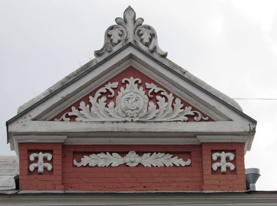 Своєрідність будівлі додає поєднання цегляної кладки з декоративними деталями рослинного характеру, виконаними з цементу. Прорізи вікон зроблені дуже широкими для більш повного висвітлення приміщення.