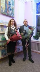 У бібліотеці ім. М. Коцюбинського вручили нагороди обласного конкурсу «Благодійник року» постійним меценатам бібліотеки – депутату Чернігівської обласної ради Олегу Заболотному та Ірині Березинець.