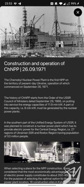 У додатку Chornobyl App зібрана вичерпна інформація по історії трагедії, розсекречені документи КДБ, карти забруднення, новини по сучасному стану Зони Відчуження, її науковим та культурним проєктам, а також спростування поширених фейків.