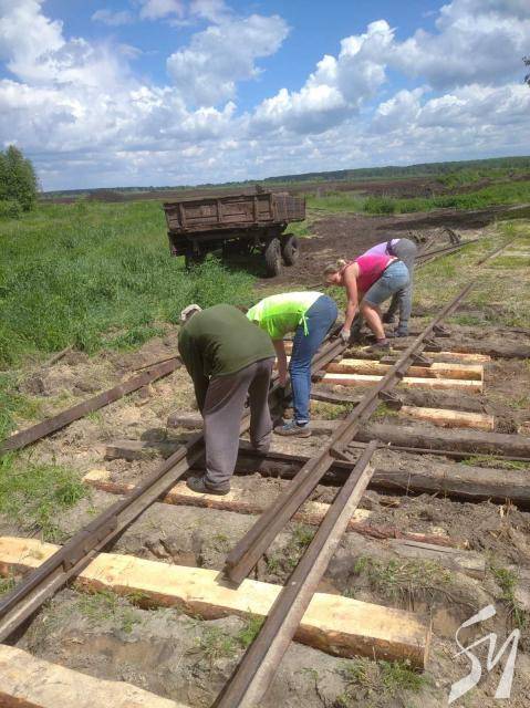 Кілометр вузькоколійки прокладуть працівники Смолинського торфозаводу на торфових родовищах поблизу заводу. Залізницю роблять для підвозу сировини, адже, починаючи з осені, на болото не заїде жодна техніка.