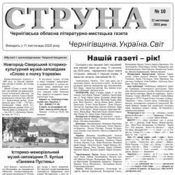 Рівно рік тому, 11 листопада 2020 року, народилася обласна літературно-мистецька газета «Струна», вийшов її перший номер. А сьогодні вийшов ювілейний № 10. Я є засновником і редактором цієї газети, як і давнішої своєї обласної газети «Світ-інфо», якій у лютому буде вже 10 років.