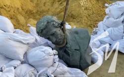 Міськрада показала кадри демонтажу погруддя і додала, що цей пам’ятник, а, можливо, й інші, мають бути збережені, але це питання вирішуватимуть мешканці вже у мирний час.