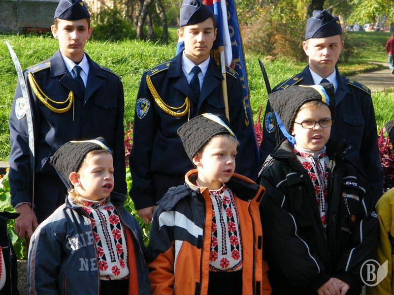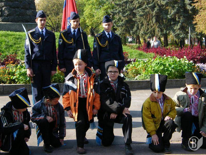 Присяга юных казаков и цветы Богдану