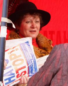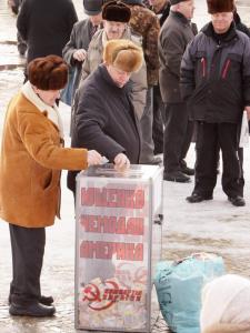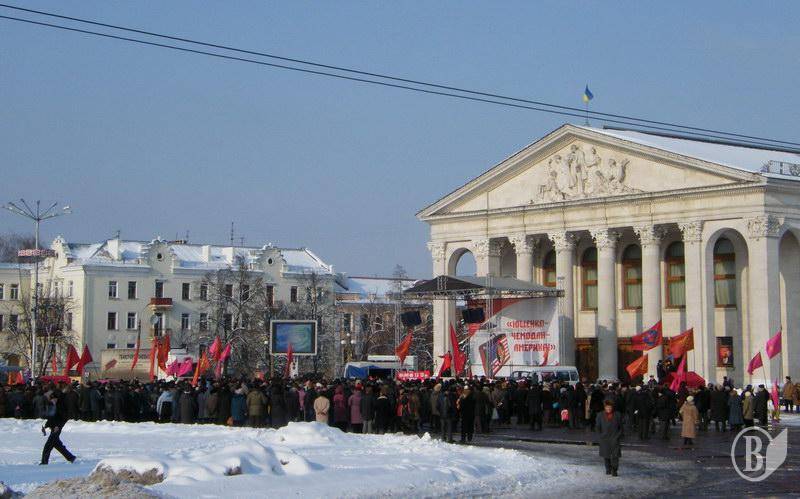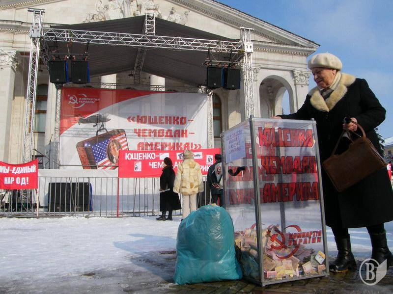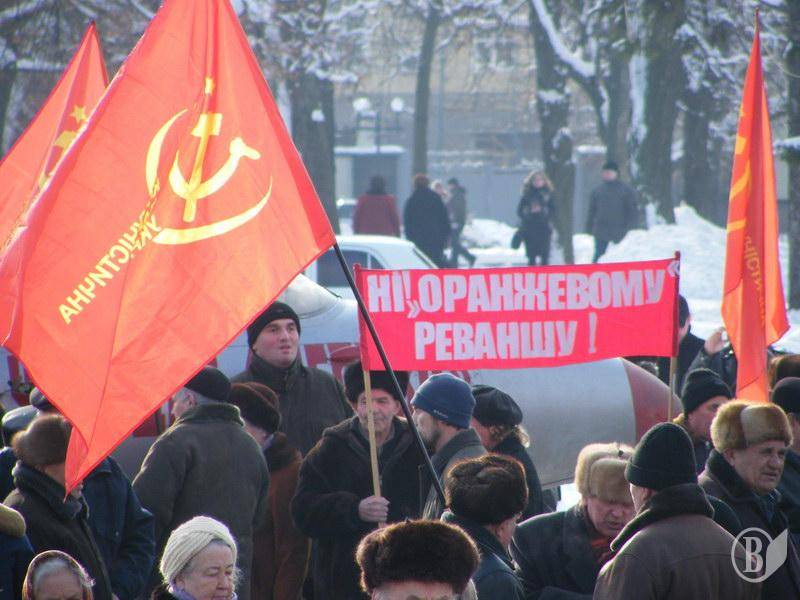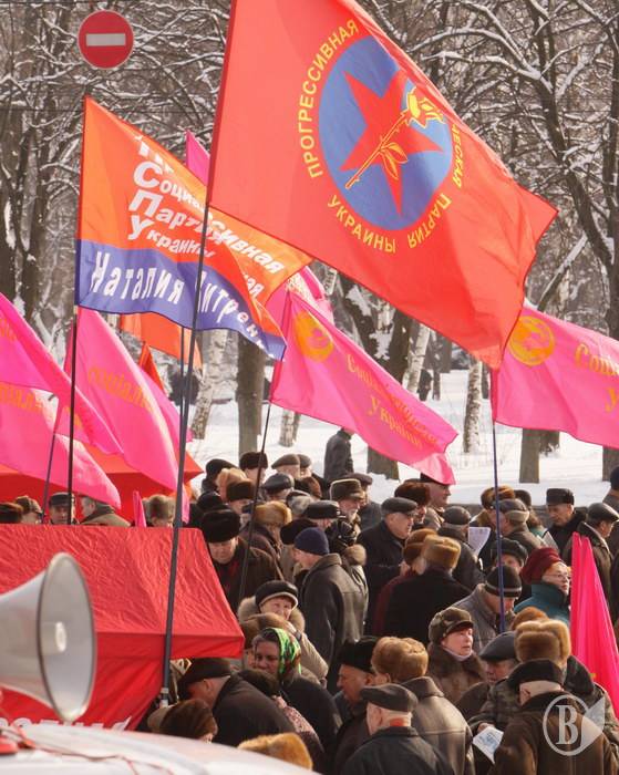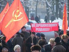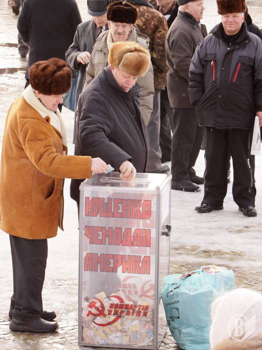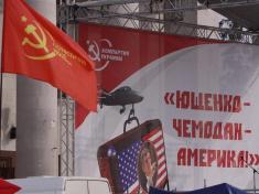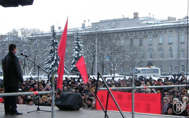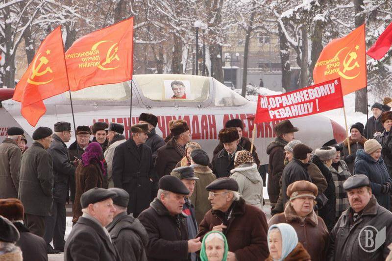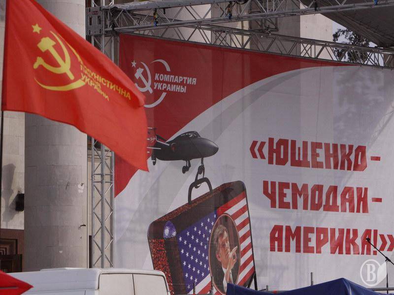 На червоних трансарантах, окрім традиційних палких комуністичних лозунгів, красувалося то слово "фашизм", то аббревіатура "НАТО". Дійсно, коли у певних верств населення є відраза до якихось слів, гріх не використовувати їх серед цільової аудиторії...