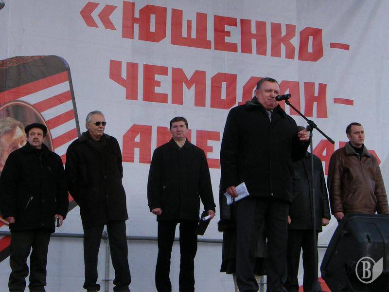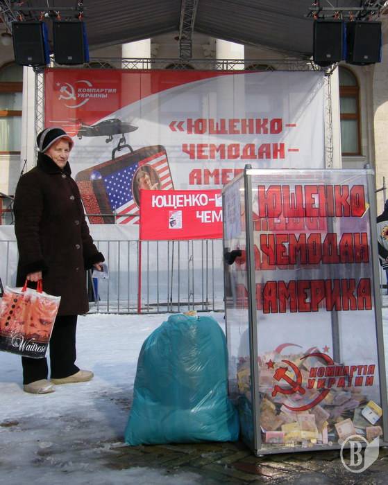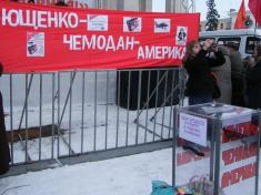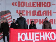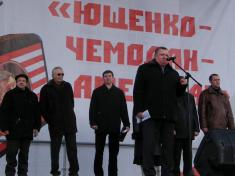 Оратори згадали деякі з лозунгів передвиборчої кампанії кандидата у Президенти Віктор Ющенка та звинуватили його у недотриманні обіцянок.
