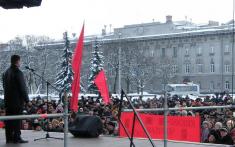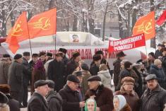 Що ж до самої акції... Дурня , як і сама комуністична ідея.Головне що тих блазнів на трибуні ніхто на Соловки не зашле , чи як Гонгадзе...Тому і повилазили. Жаль пенсіонерів , чесне слово , з одного боку влада кризою лякає, з іншого - комуняки голову задурюють , хоча може вони того і заслужили , саме ці пенсіонери , на саме цій площі?