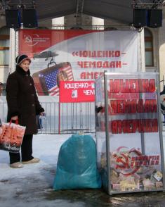 Політичне шоу з палкими промовами, концертом та політ-гуморесками відбулось сьогодні на Красній площі міста Чернігова у рамках шоу-туру "Ющенко, чемодан, Америка".