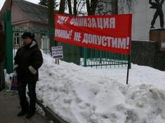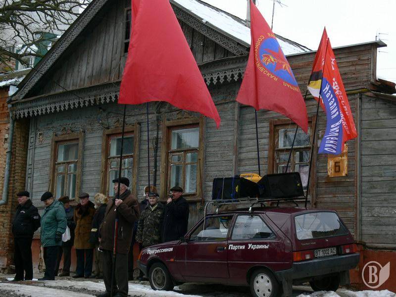 Около музея-заповедника им.М.Коцюбинского появилось сразу 2 пикета: молодёжный от КУН и лево-пенсионной ориентации под флагами КПУ, ПСПУ. «Решительно» настроенных левых, в т.ч. депутатов городского и районного советов работники СБУ на выставку не пропустили.
