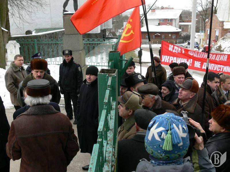 Митингующие под красными флагами в ответ выражениями не перебирали. Называя в мегафон работников СБУ «Сбушниками ср**ми», а кое-кого из представителей власти – «Борзнянскими ж*бами», они окрестили открытие выставки об УПА провокацией и продолжили:
