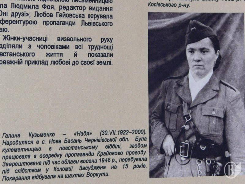 Те 500 фотокарточек, которые есть, они уникальны и большинство из них впервые демонстрируются. Я с удивлением для себя узнал, что Галина Кузьменко из села Новая Басань (Бобровицкий район Черниговской области) была замечательной смертоносной пулемётчицей в одной из сотен на Волыни. То есть, выставка намного интереснее.