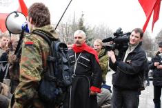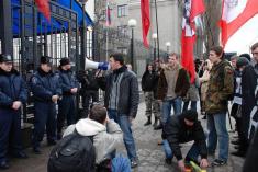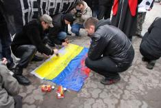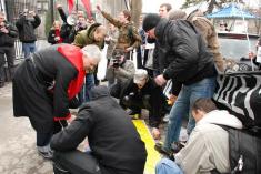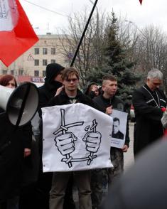 Позже под посольством РФ состоялась акция протеста, в которой приняли участие члены БРАТСТВА и преследуемые в России члены Национал-Большевистской партии.