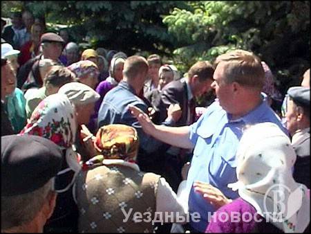 Разъяренные жители посёлка Лосиновка натолкли главу Нежинской районной государственной администрации Олега Бузуна прямо под стенами Лосиновского поселкового совета.