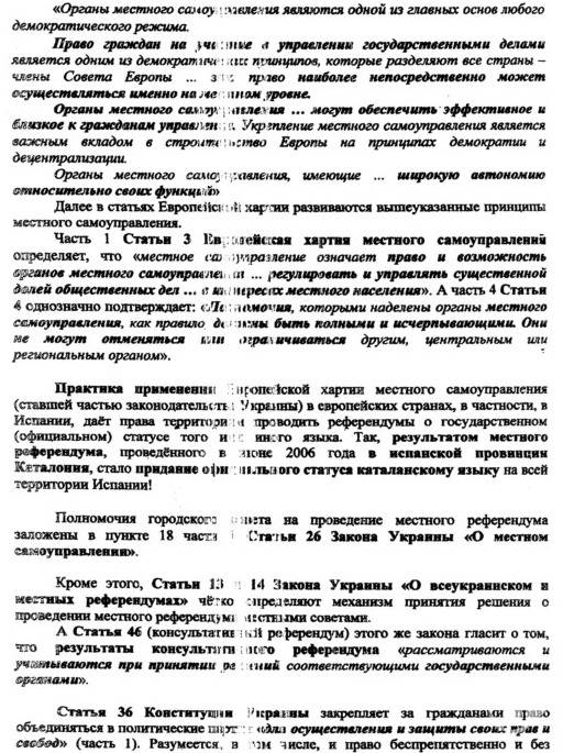 Так, пояснювальна записка до проекту рішення щодо референдуму написана російською мовою. Очевидно, це було зроблено для посилення інформаційного навантаження пояснень та ілюстрації очікуваного російськомовного майбутнього.