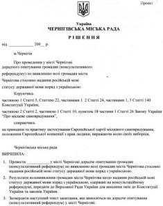 На чергову 39 сесію Чернігівської міської ради фракції Партії регіонів, КПУ та ПСПУ виносять проект рішення згідно якого пропонується провести в місті Чернігові дорадче опитування громадян (консультативний референдум) про надання російській мові статусу державної поруч з українською.